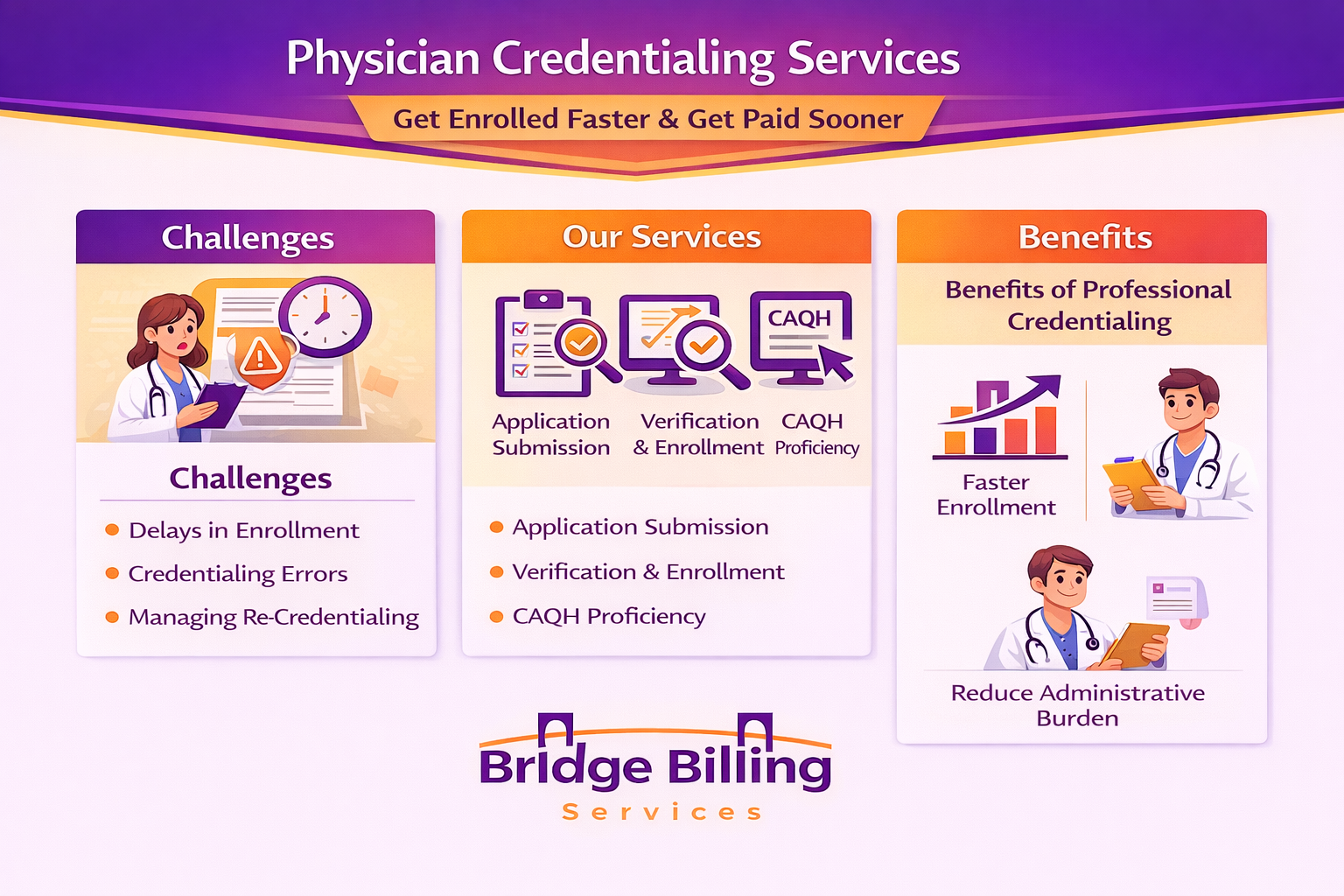 Ready to get credentialed faster and paid without delays? Partner with Bridge Billing Services today.