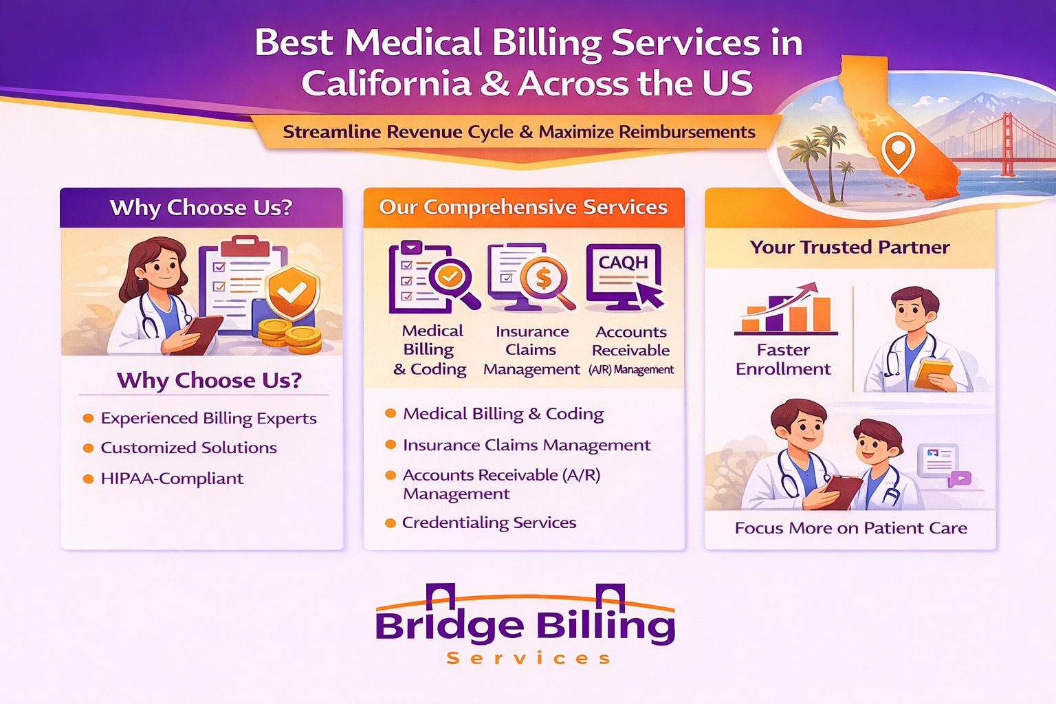 Bridge Billing Services is the best medical billing service in California and across the U.S., helping providers reduce denials, accelerate reimbursements, and achieve long-term financial stability.